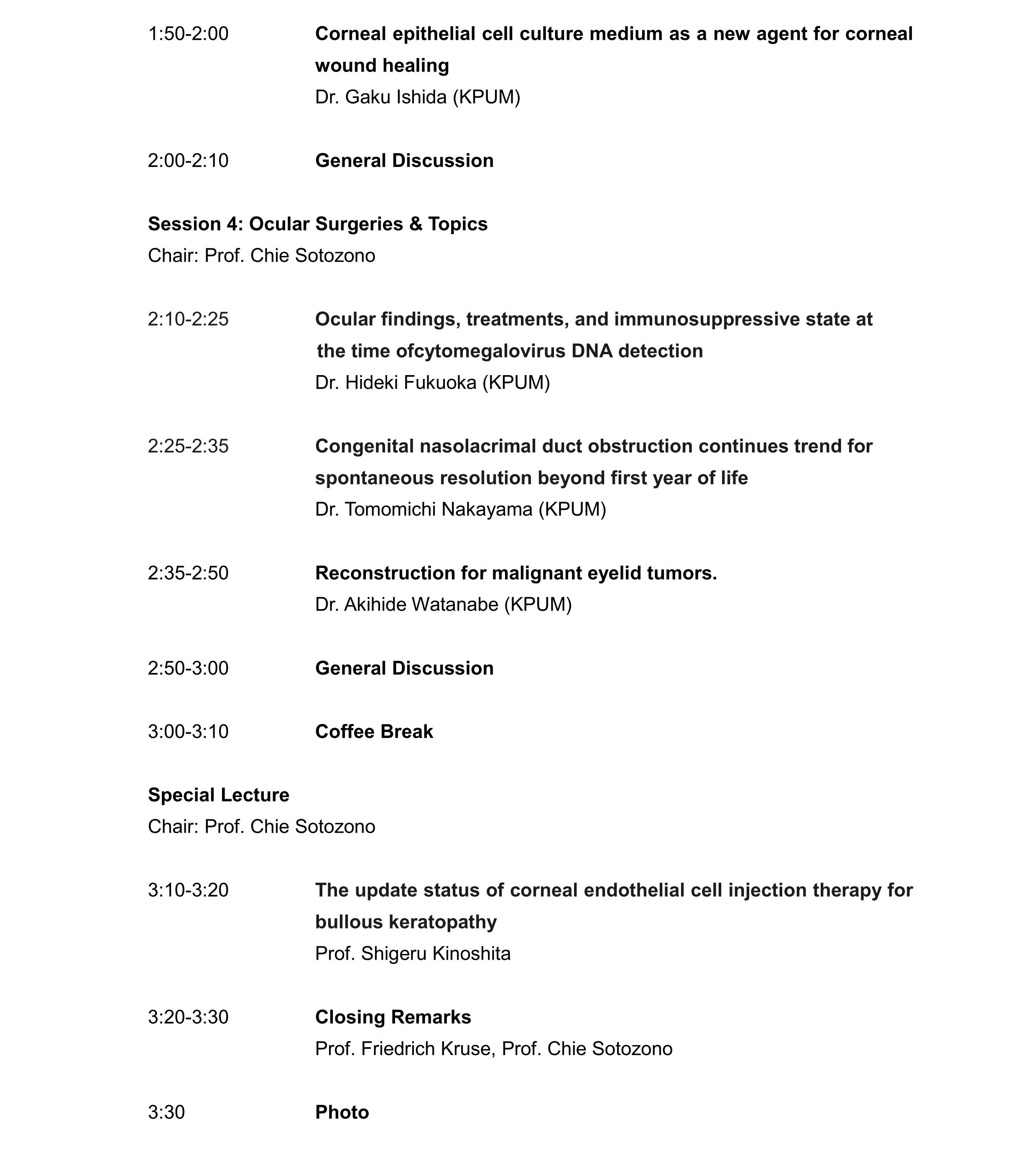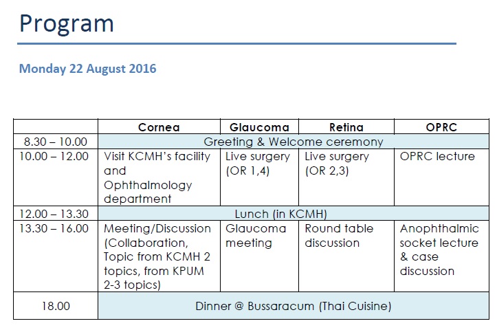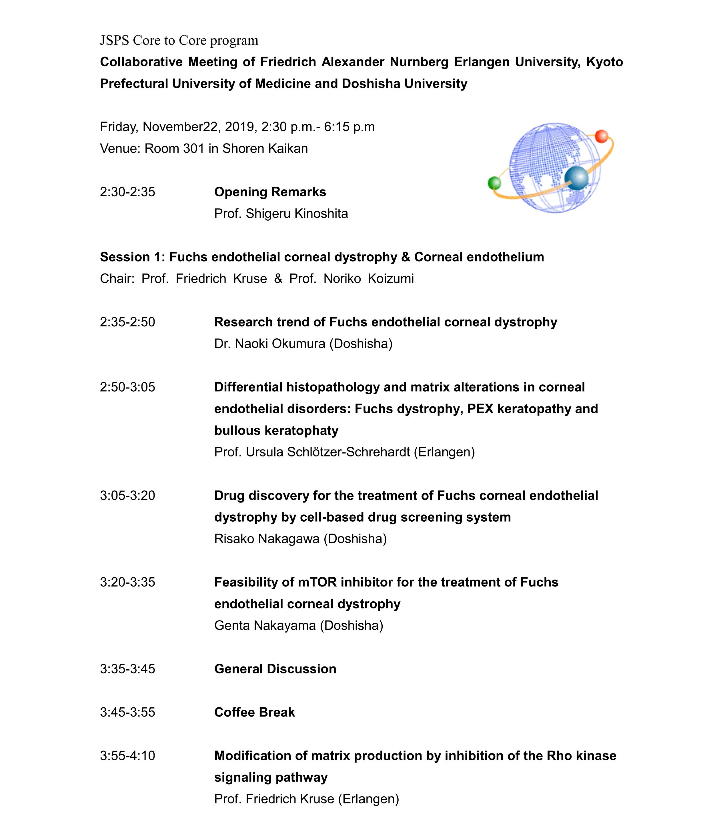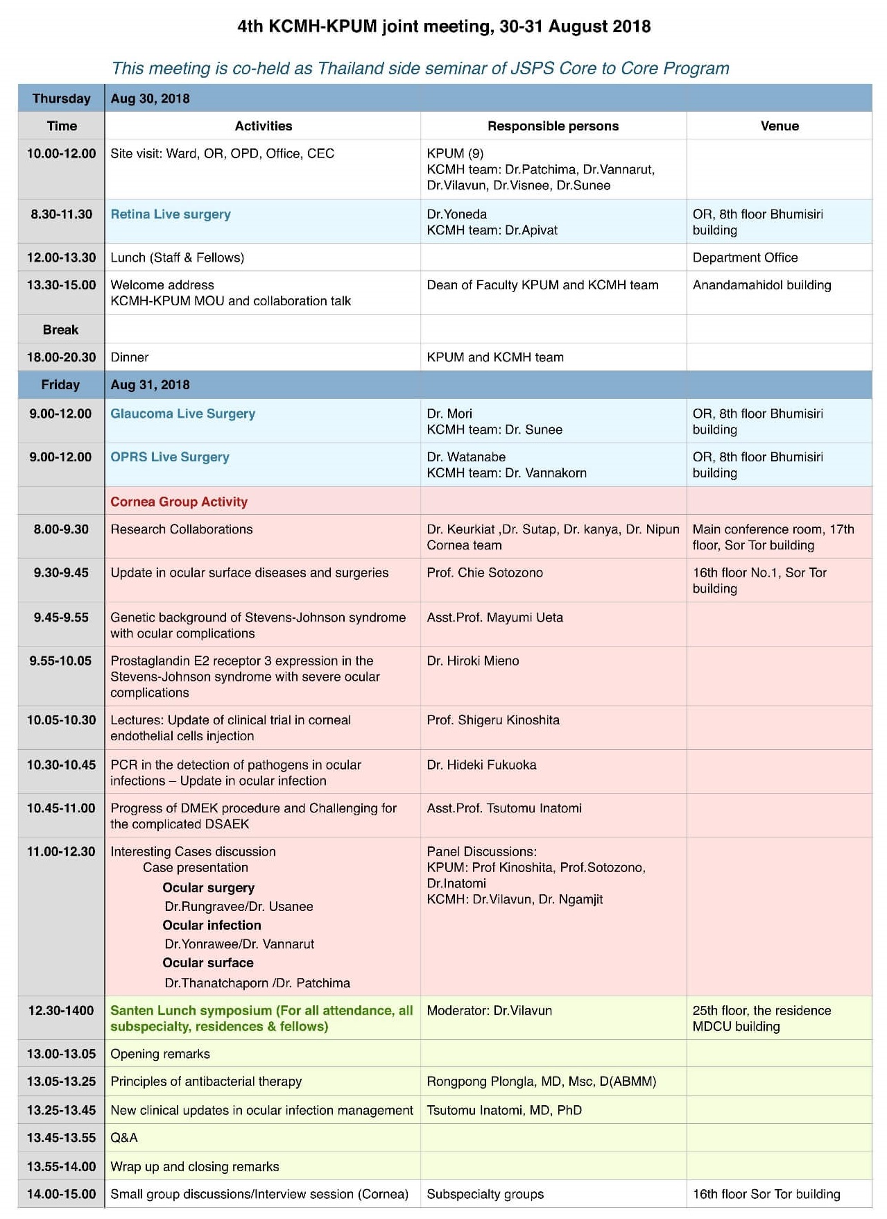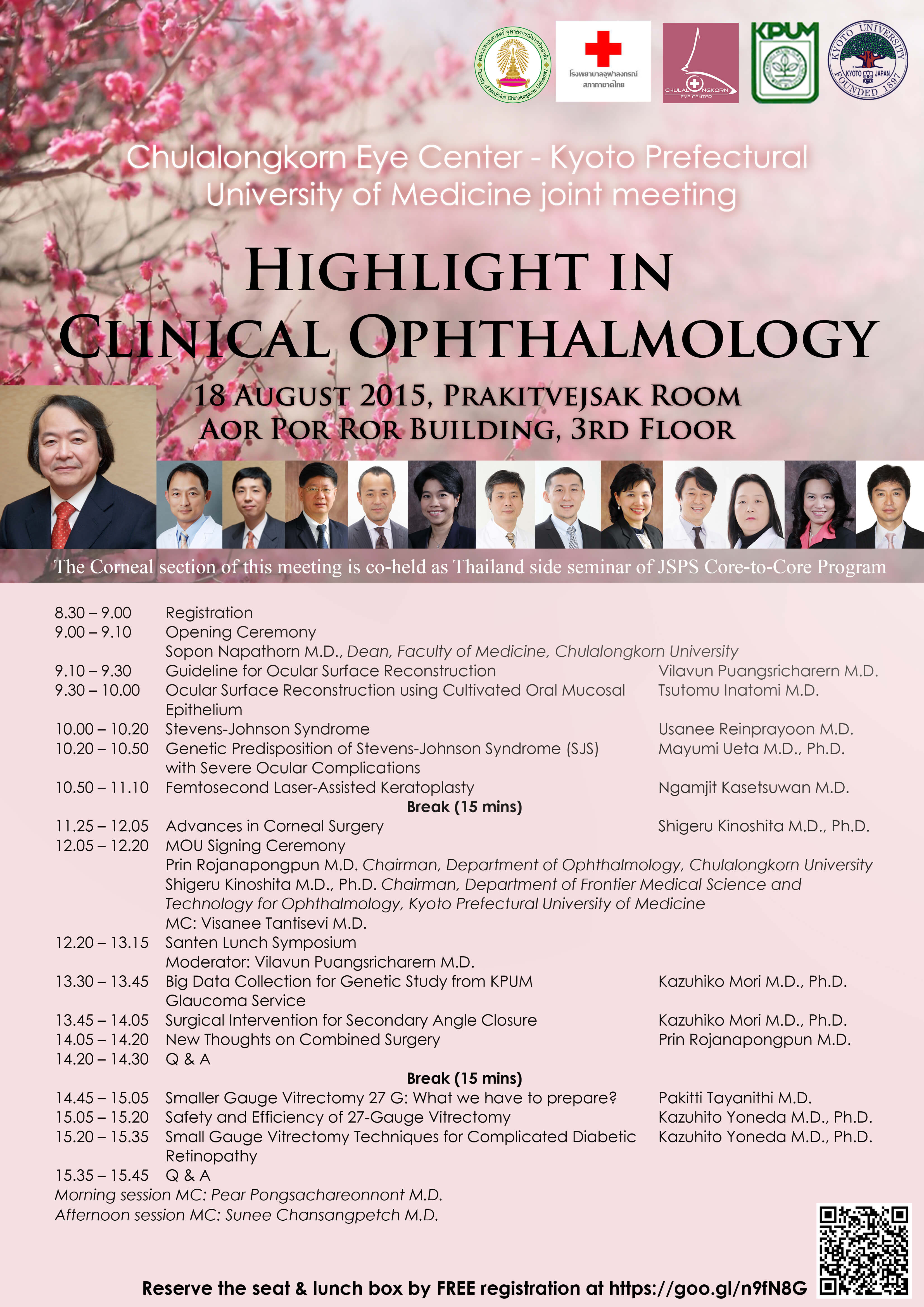 JSPS Core-to-Core Program “Chulalongkom Eye Center ? Kyoto Prefectural University of Medicine” (The Corneal section of this meeting is co-held as Thailand side seminar of JSPS Core-to-Core Program)日本学術振興会研究拠点形成事業「チュラーロンコーンアイセンター・京都府立医科大学共同ミーティング」