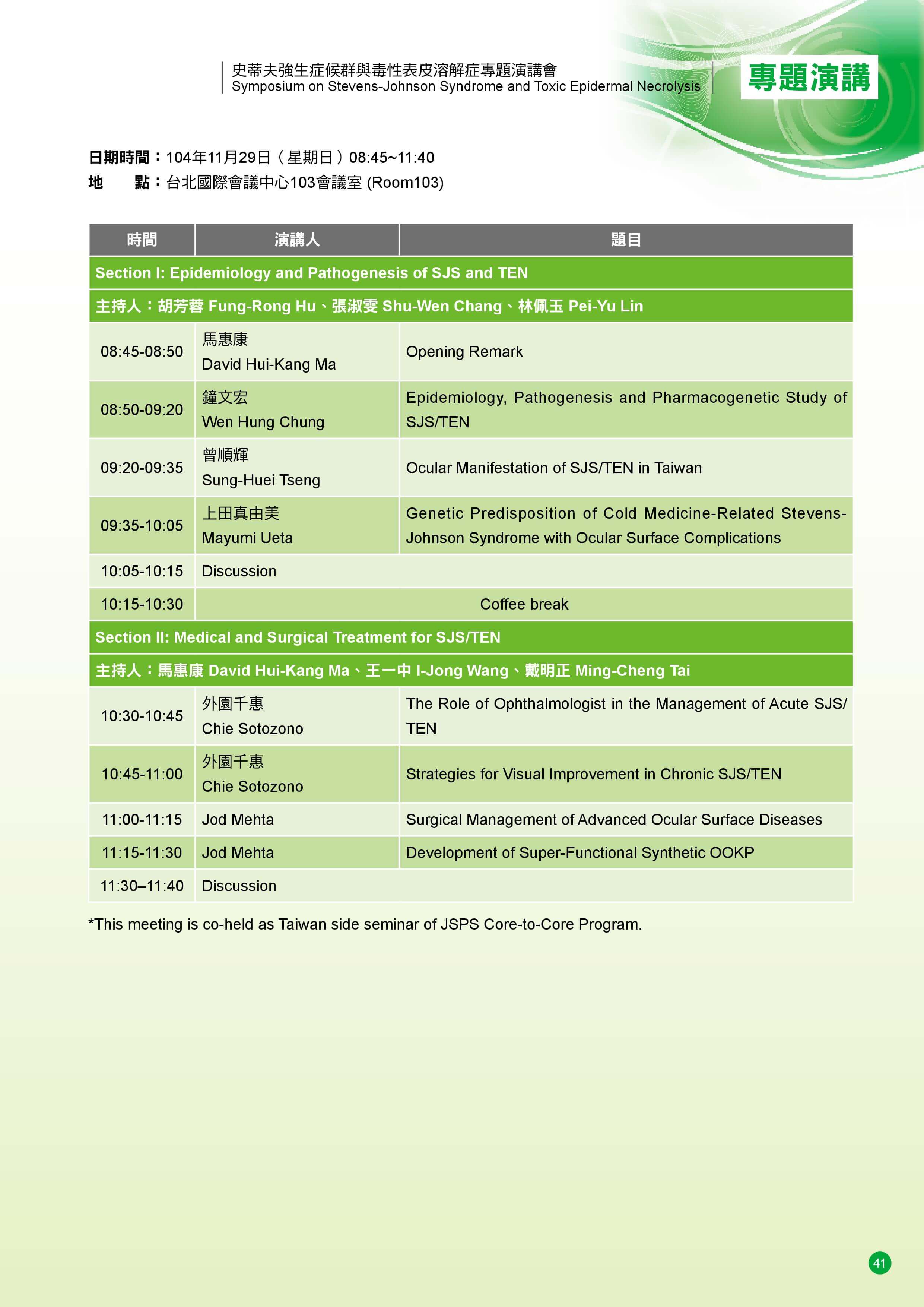 第4回 JSPS Core-to-Core Program セミナー(第一回国際Stevens-Johnson Syndrome シンポジウム)
