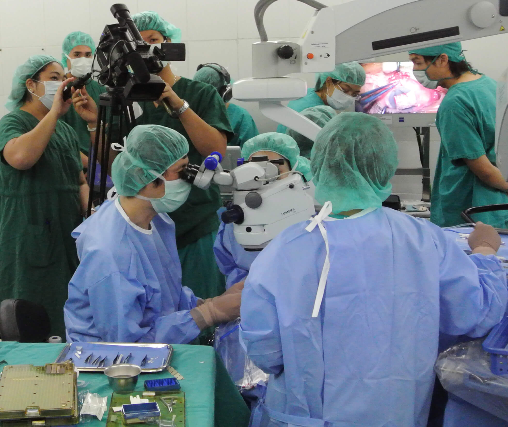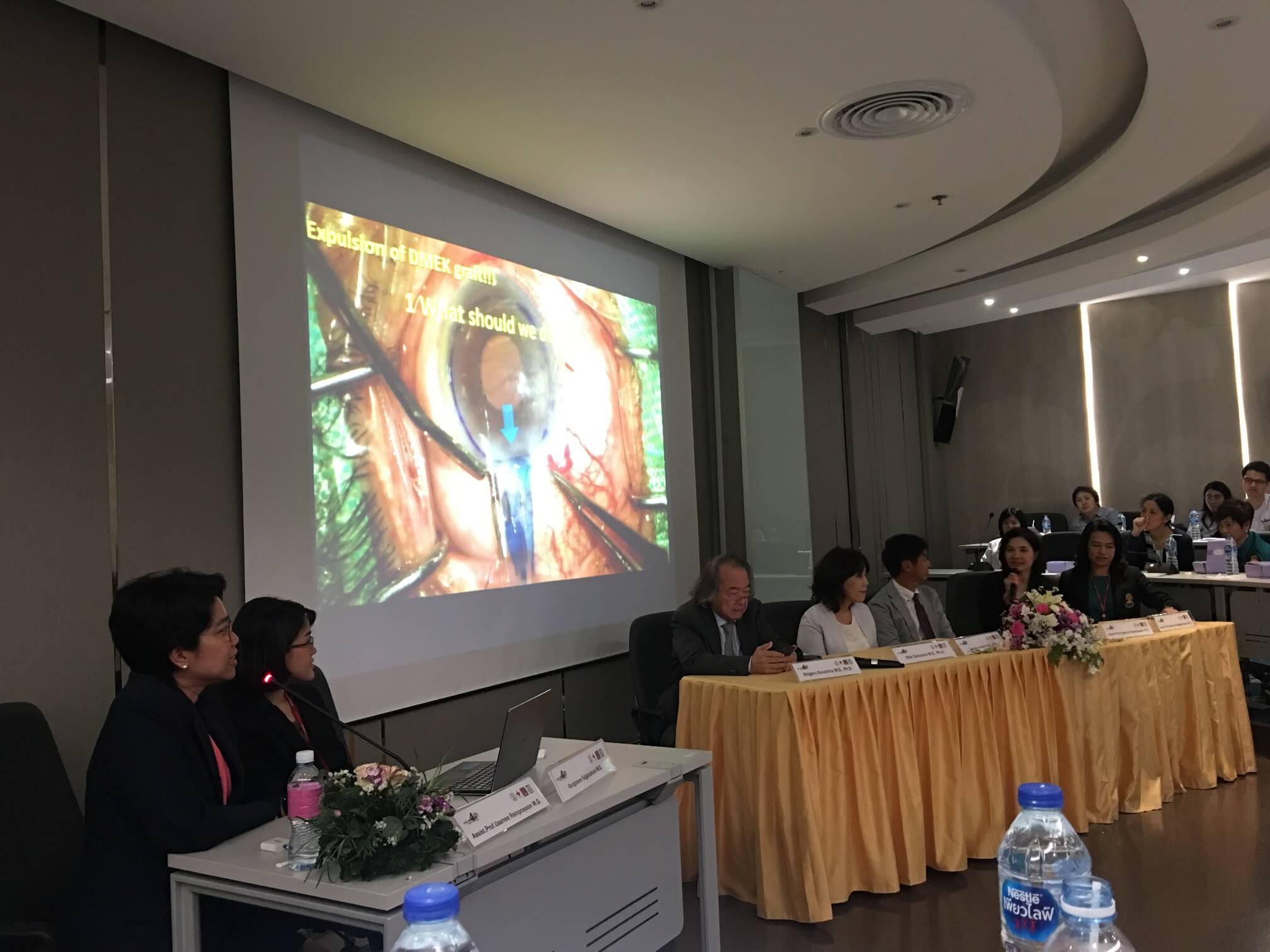 2018年8月30日(木曜日)から31日(金曜日)にかけて、タイのチュラーロンコーンアイセンターにて、日本学術振興会研究拠点形成事業「チュラーロンコーンアイセンター・京都府立医科大学共同ミーティング“HAND IN HAND,WE CAN LEARN AND GROW. ”」が開催されました。2日にわたって交流が行われ、30日に網膜のLive-Surgeryが、31日に緑内障と眼形成のLive-Surgeryが行われ、日本の最先端の手術技術の共有を行うことができました。また、31日は、角膜領域を中心としたカンファレンスが行われ、研究成果の発表がなされました。