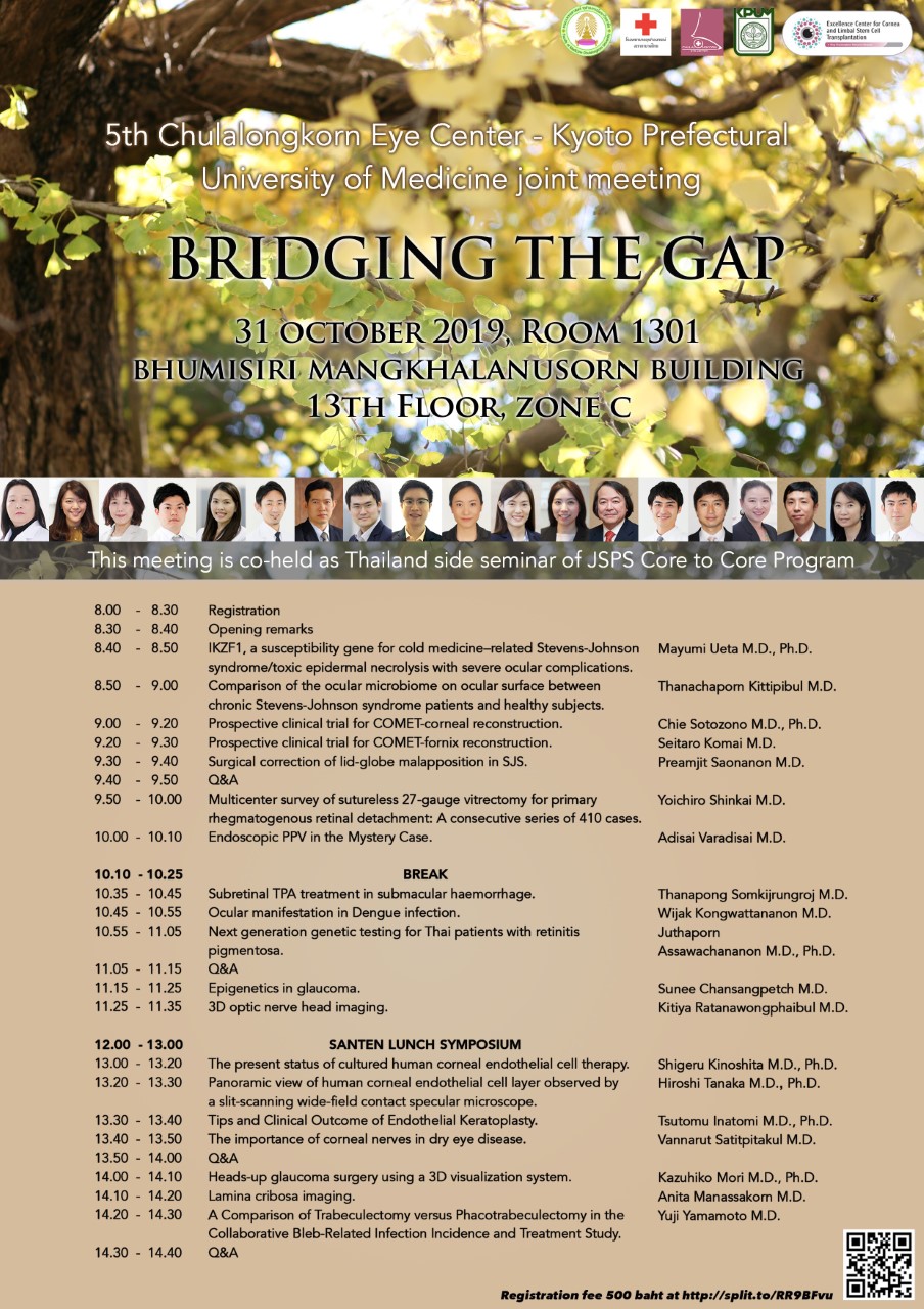 JSPS Core-to-Core Program - 4th Chulalongkorn Eye Center - Kyoto Prefectural University of Medicine joint meeting “BRIDGING THE GAP”