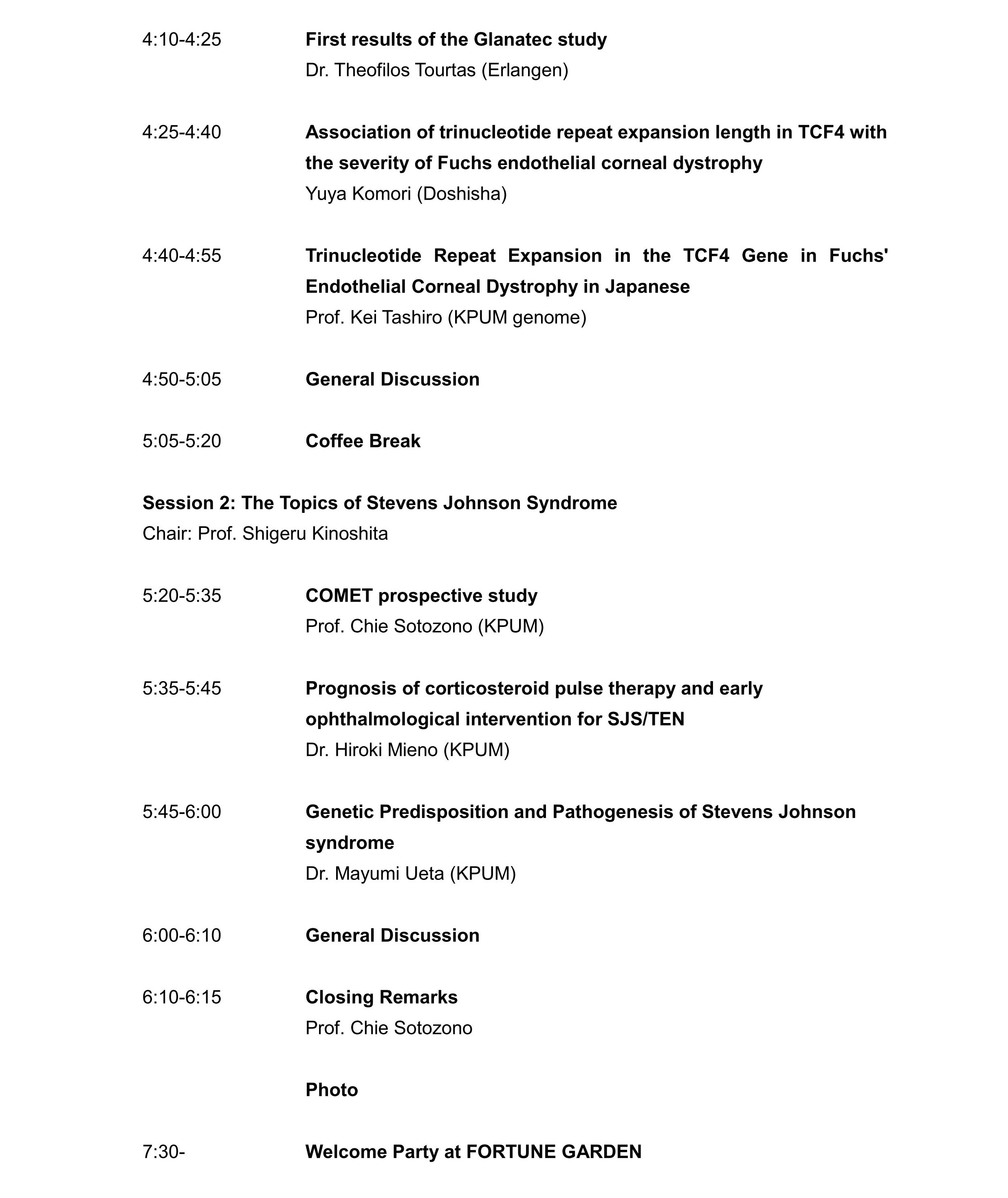 (JSPS Core-to-Core Program “International genome study based elucidation of pathology and assembly of treatmentstrategy of the severe ocular surface disease “ in 2015 Spring)