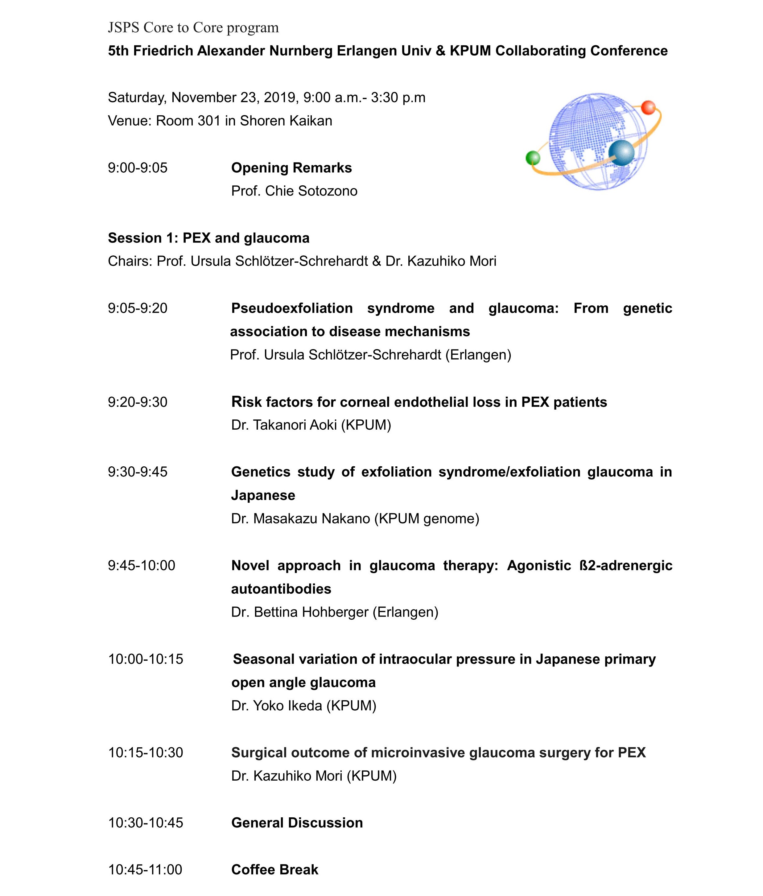JSPS Core-to-Core Program - Collaborative Meeting of Friedrich Alexander Nurnberg Erlangen University, Kyoto Prefectural University of Medicine and Doshisha University - and - 5th Friedrich Alexander Nurnberg Erlangen Univ & KPUM Collaborating Conference -