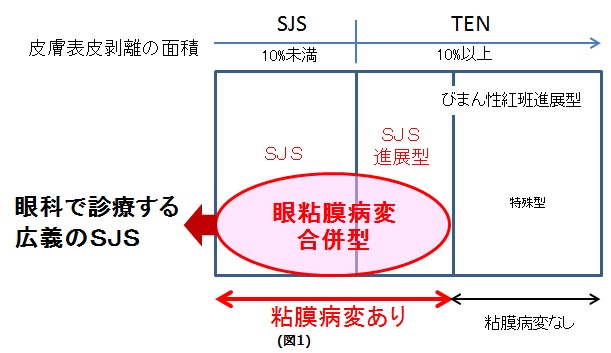 SJSとTENの区別はできませんので、眼科ではSJSとTENを併せて広義のStevens-Johnson